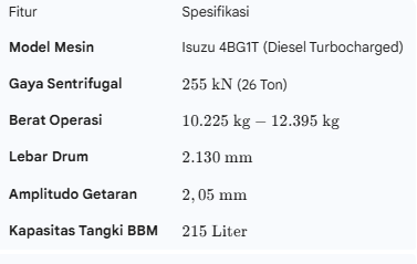 Salah satu keunggulan teknisnya adalah amplitudo tinggi sebesar 2,05 mm. Fitur ini memungkinkan energi getaran menembus material tanah hingga kedalaman $60\text{ cm}$, yang berarti Anda membutuhkan lebih sedikit lintasan (passes) untuk mencapai target kepadatan yang ditentukan. Efisiensi ini secara langsung akan memangkas waktu pengerjaan proyek Anda.